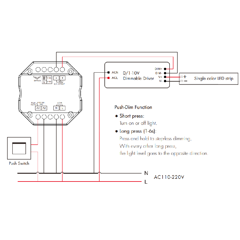 L1 Control remoto inalámbrico RF LED Dimmer 0-10V 1-10V AC Push Dim Switch 220V Zigbee Controller con certificación RoHS