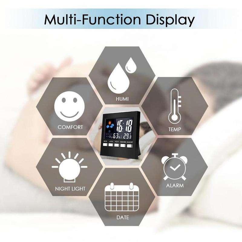 Reloj Digital LED con Temperatura, Humedad y Hora, Reloj de Escritorio para Dormitorio, Termómetro, Higrómetro, Reloj de Mesa