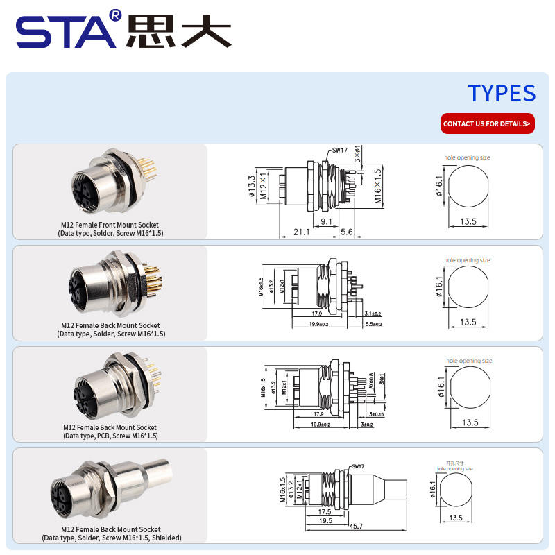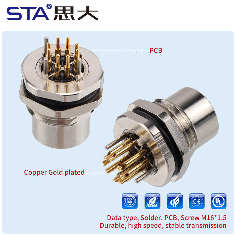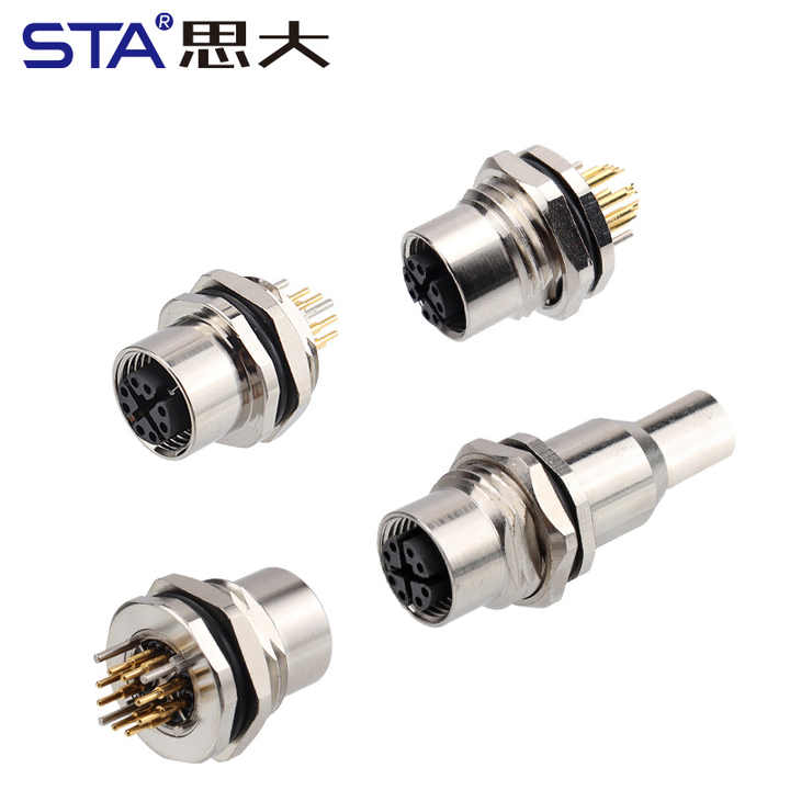 Chấm dứt:M12 kim loại phía trước trở lại gắn kết PCB ổ cắm