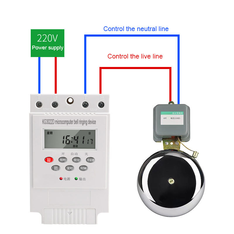 Dispositivo de timbre completamente automático controlado por microordenador para escuela y fábrica, controlador de tiempo de 28 grupos, interruptor de Control de tiempo de 220V