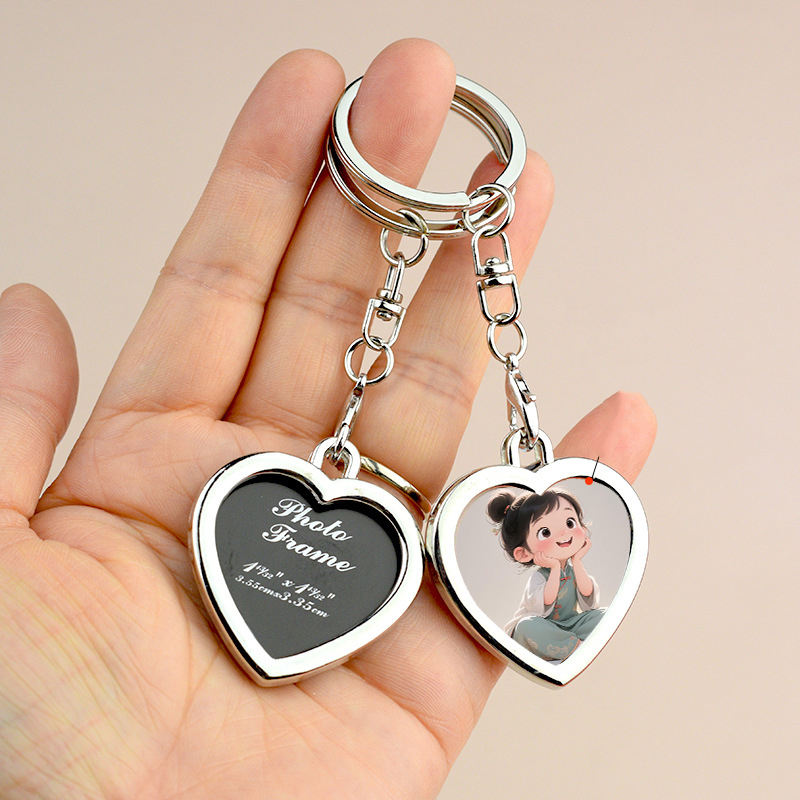Mini khung ảnh Keychain với tên tùy chỉnh logo kim loại Craft Key Ring cho khuyến mại quà lưu niệm phụ kiện