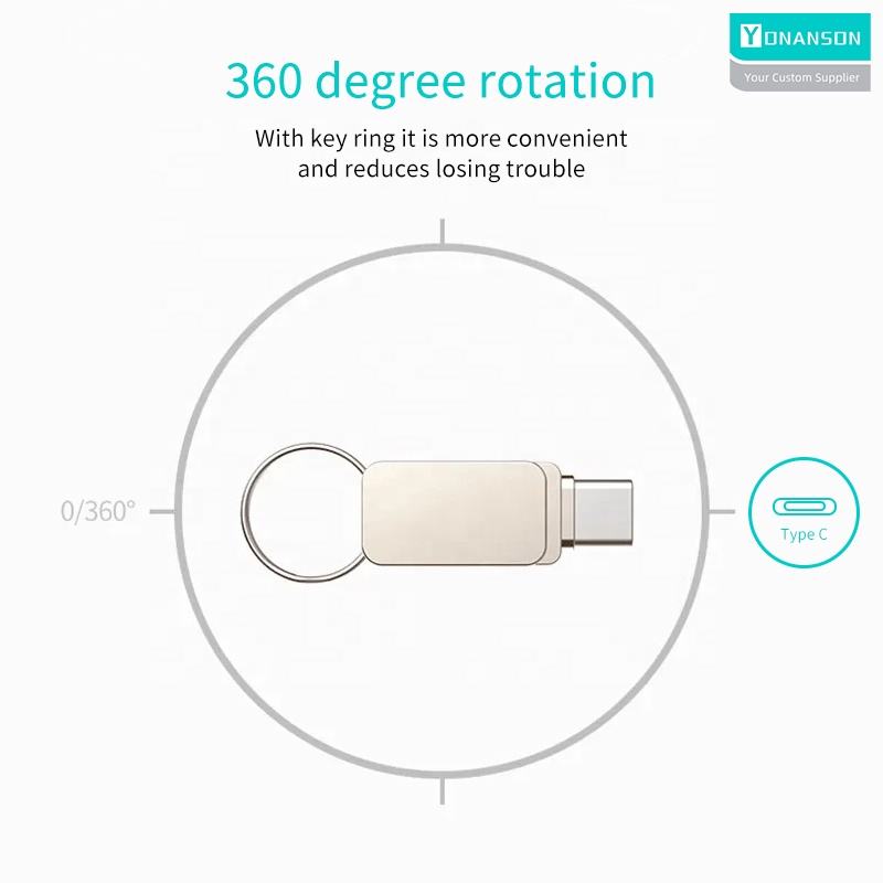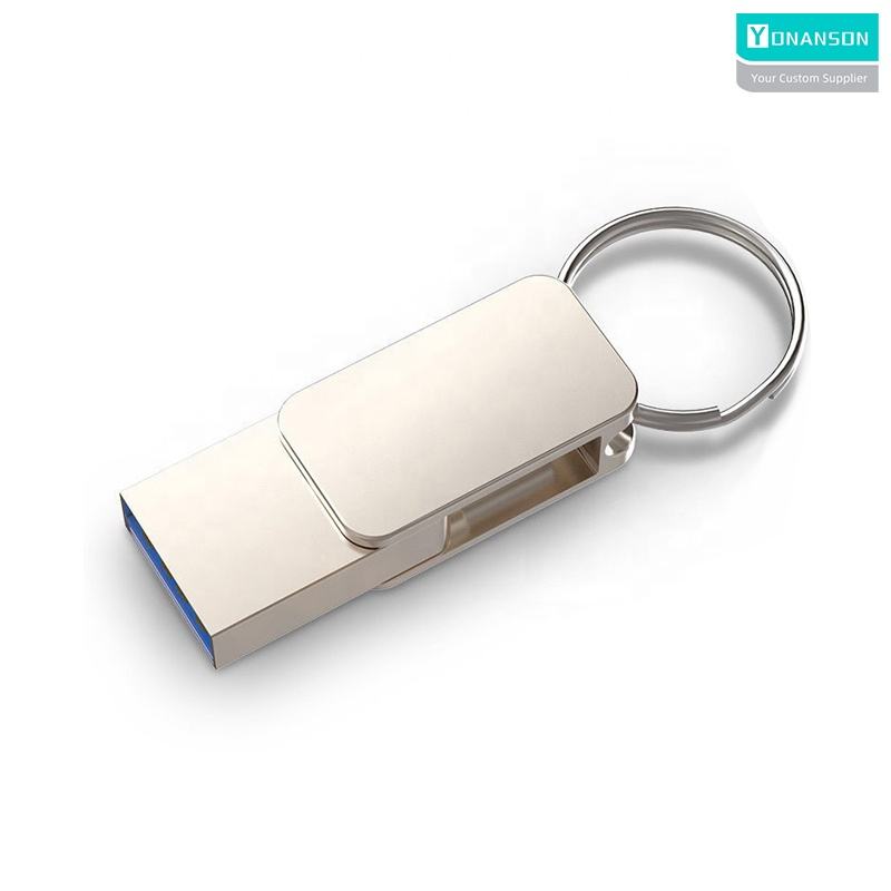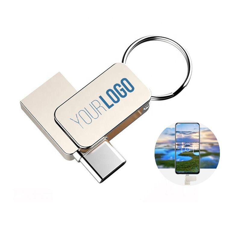 Mini unidad flash USB tipo C con llavero, Memoria USB giratoria de Metal 2 en 1, llave USB OTG 3,0, Pendrive al por mayor