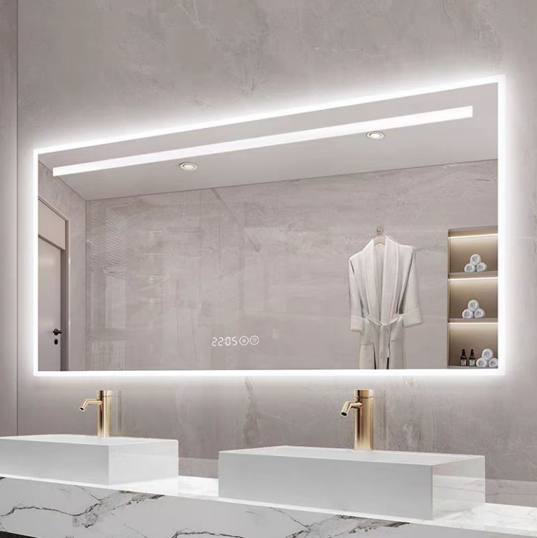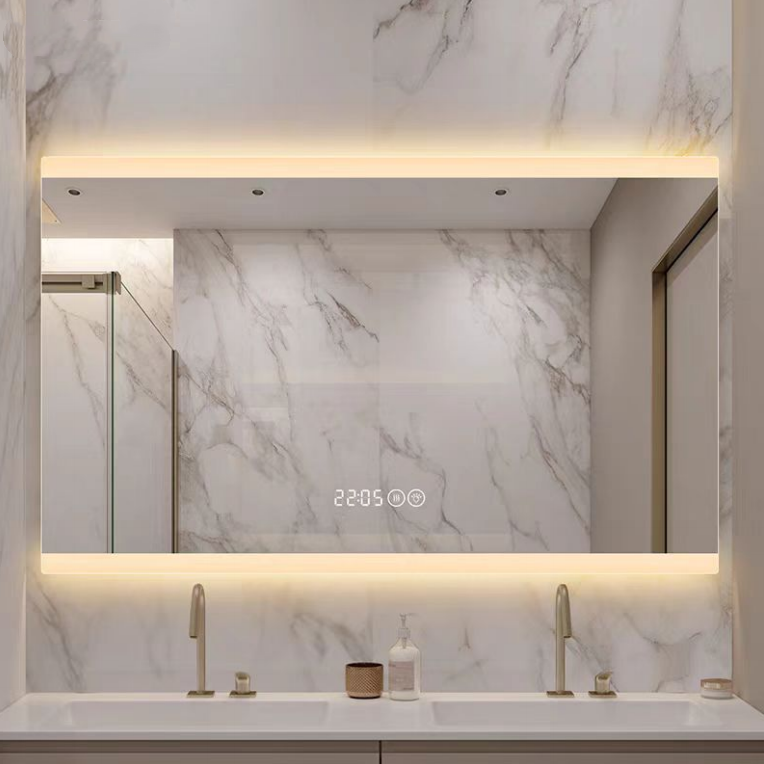 Phong cách hiện đại thông minh hình chữ nhật thời gian hiển thị Gương phòng tắm tùy chỉnh phòng tắm Led Gương