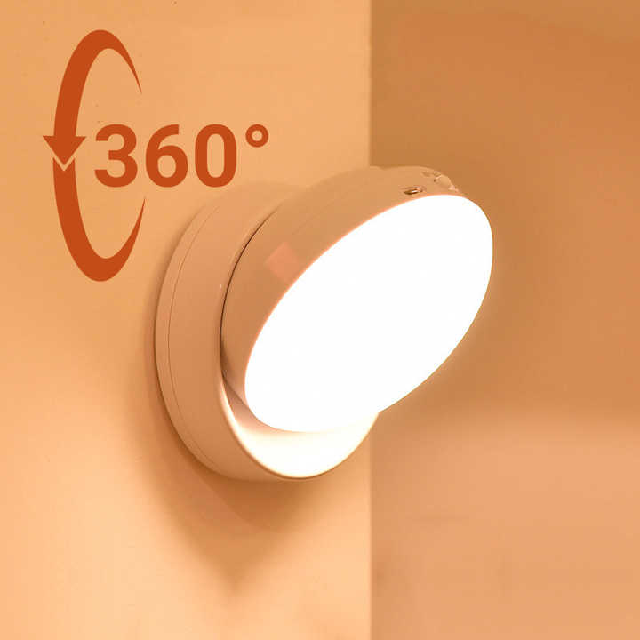 Sensore di movimento 360 rotazione LED luce senza fili camera da letto lampada USB ricaricabile risparmio energetico corpo induzione PIR Cabinet luce