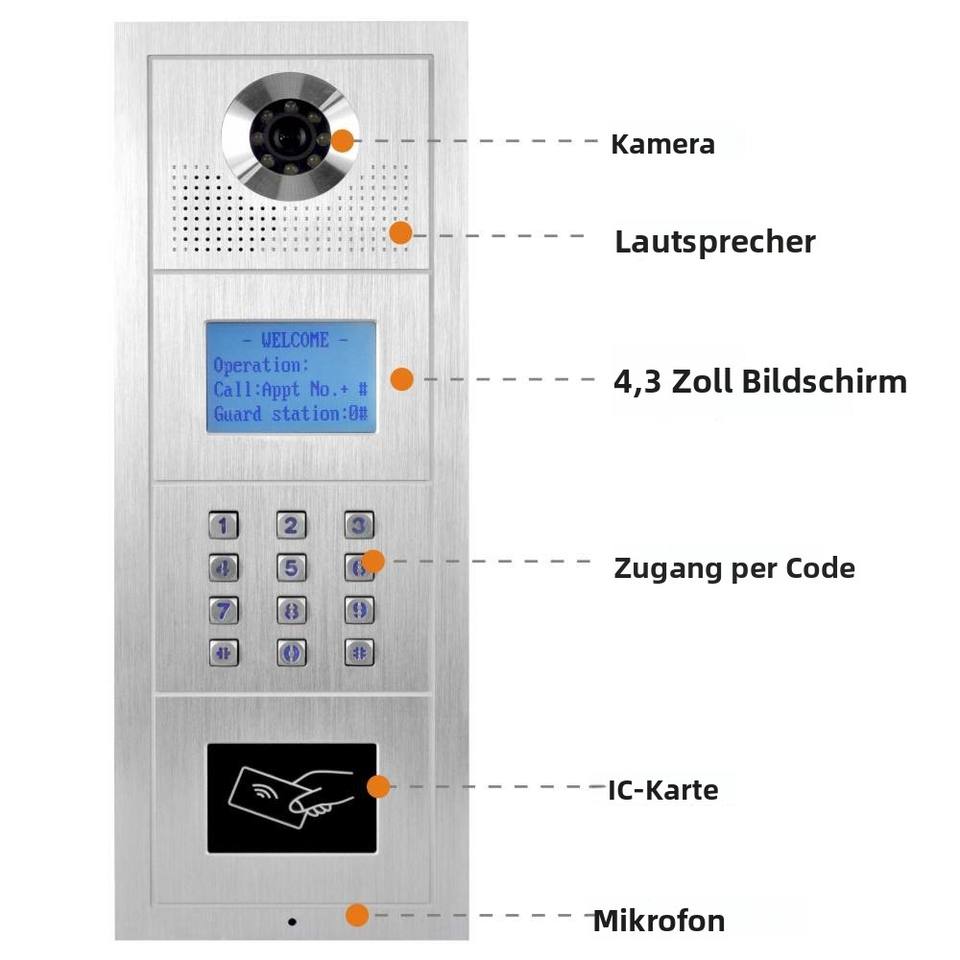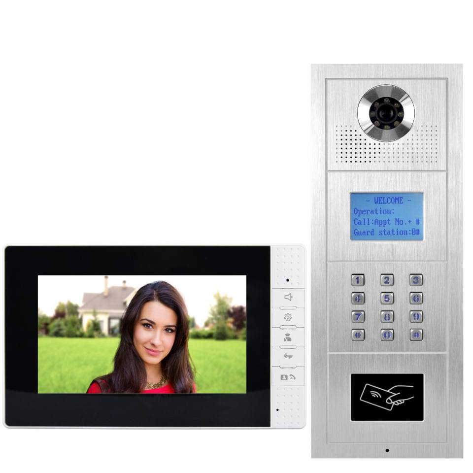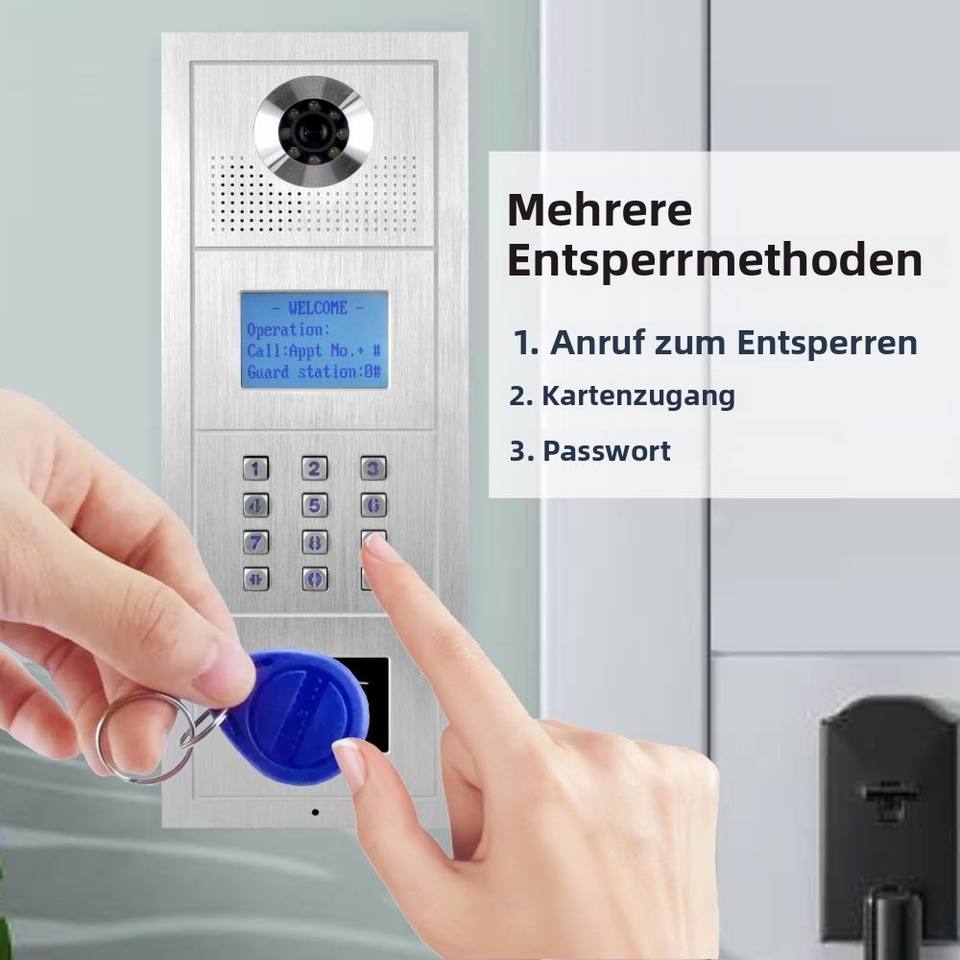 Multi Apartment Intercom Telefon HD Bild Tastatur Code für den Zugang RFID Schlüssel anhänger Bus Strom versorgung CAT5 & CAT6 Kabel anschluss Tür Eingang