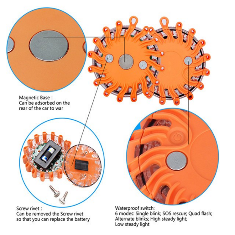 Baliza de Emergencia LED Giratoria Multicolor para Averías de Coches, Luz Intermitente de Seguridad Vial