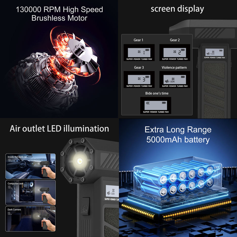 Funzione:Doppia modalità di soffiaggio dell'aria e aspirazione
