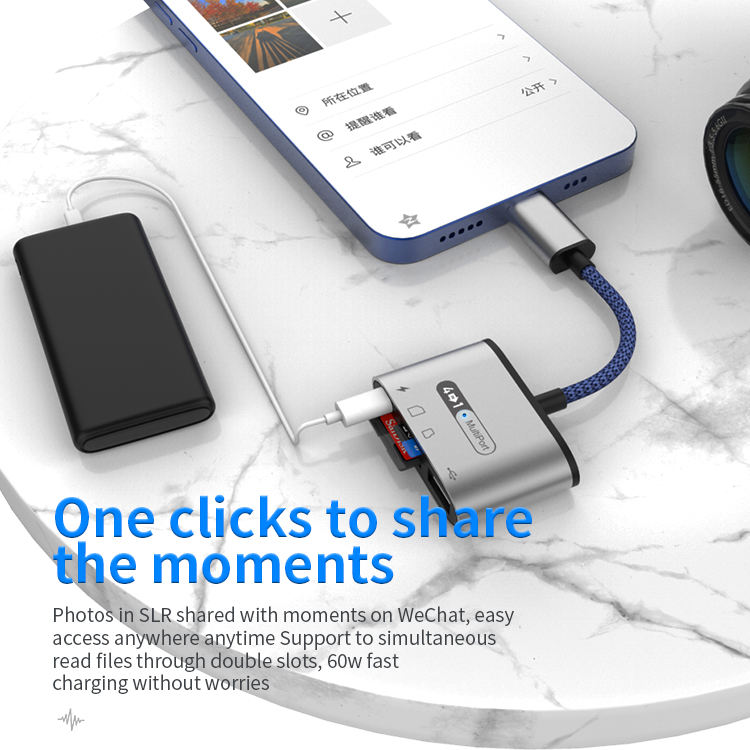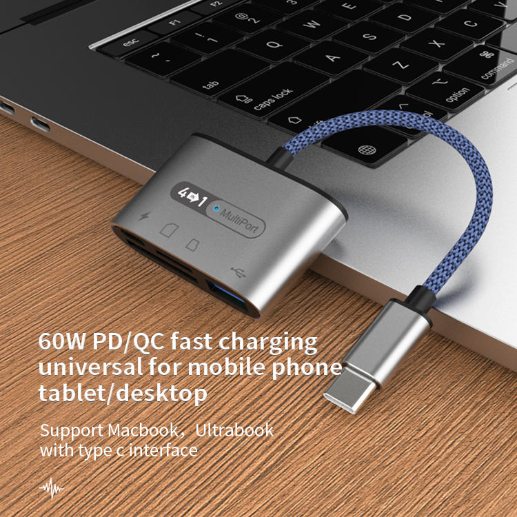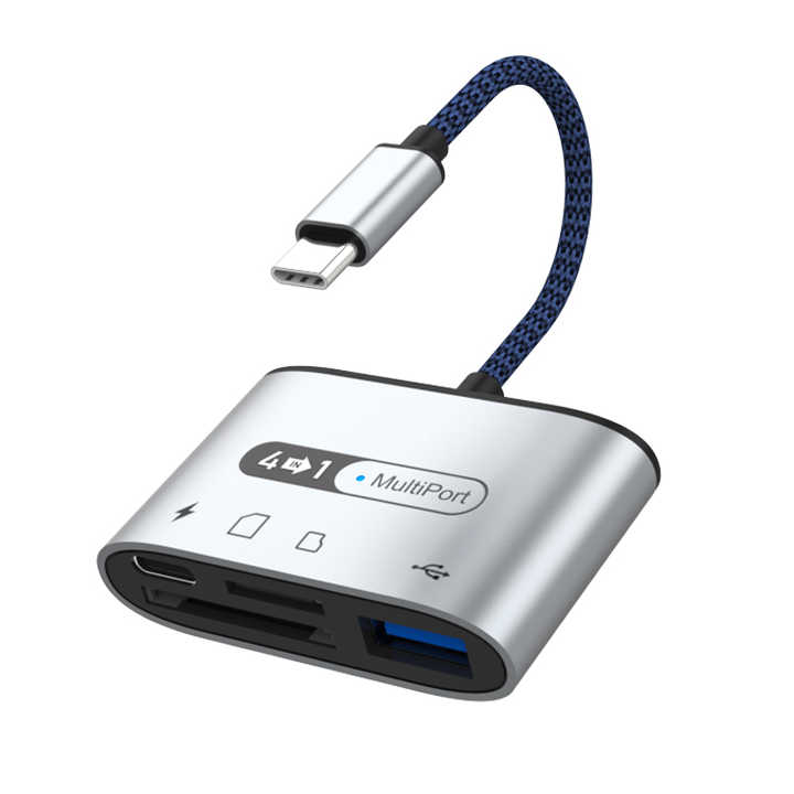 Çok fonksiyonlu 4 in 1 kart okuyucu tipi C için şarj USB portu ile SD TF USB bellek kart okuyucu iPad HUAWEI xiaomi için