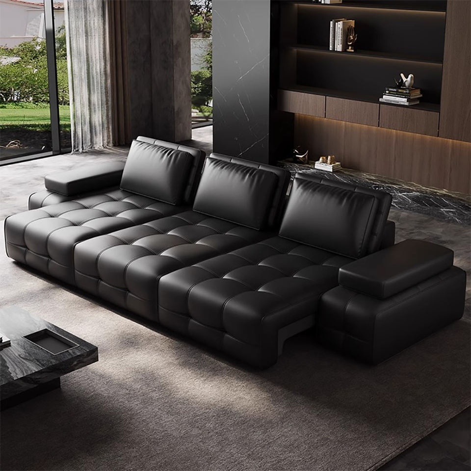 Sofá Cama Seccional Multifunción Eléctrico Inteligente Motorizado Extensible Convertible en Forma de L de Piel Genuina de Napa de Grano Superior para