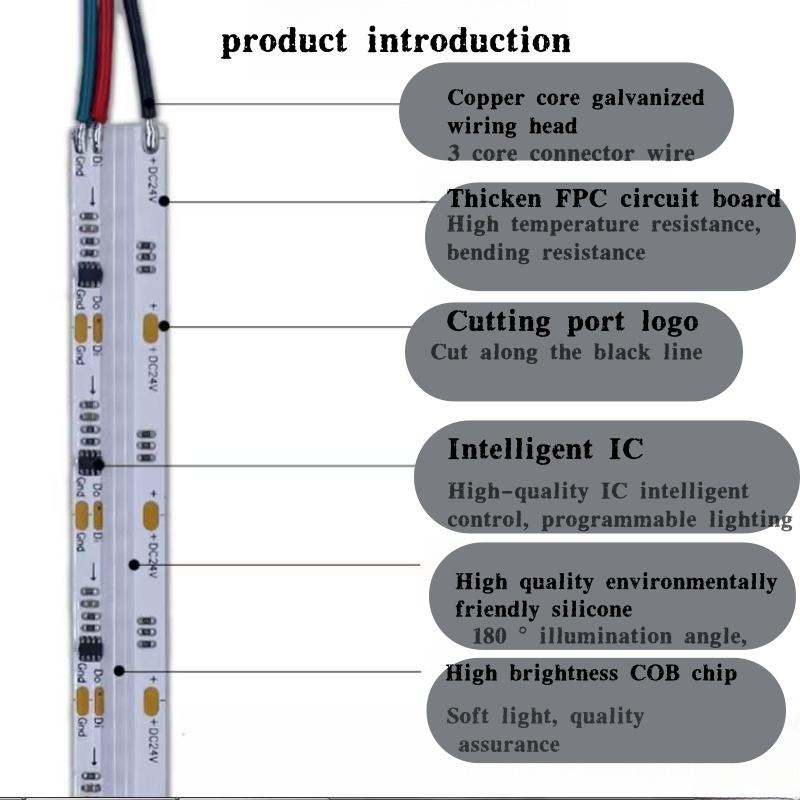 Đa-màu rgbcct địa chỉ rgbic LED COB nhà sản xuất băng khu dân cư 24V ip33 không thấm nước ứng dụng màu đen kiểm soát dải ánh sáng