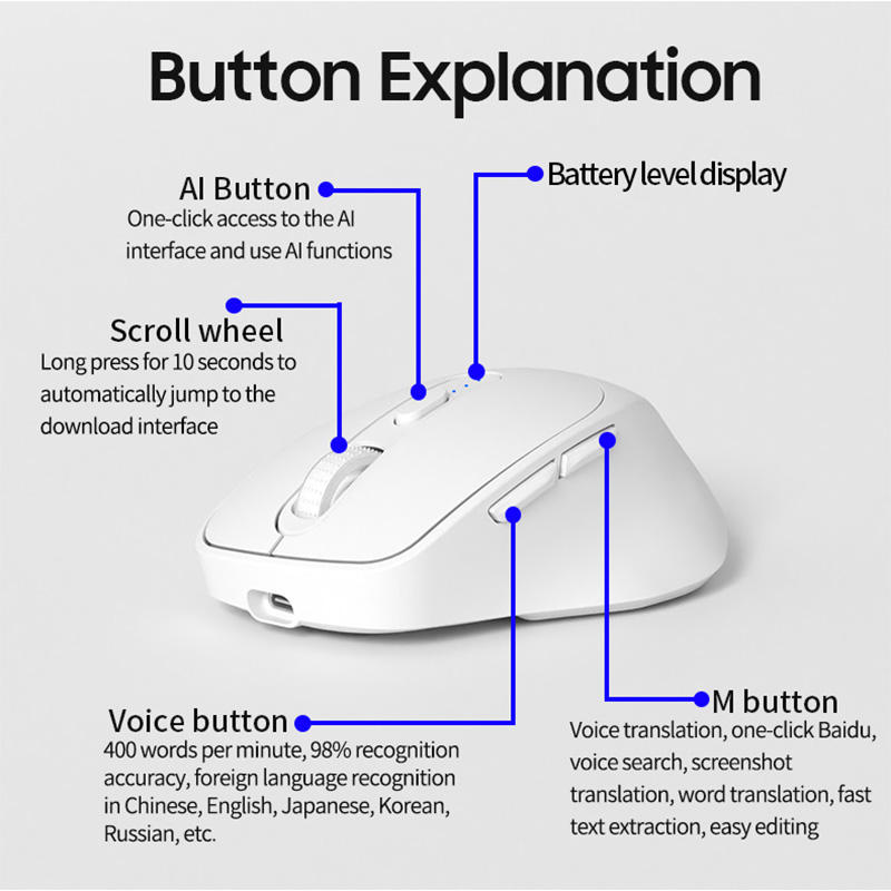 Dispositivo AI en varios idiomas ChatGPT Ratón inalámbrico Smart AI Voice Office Entrada de escritura de voz AI Ratón inteligente para Windows ios