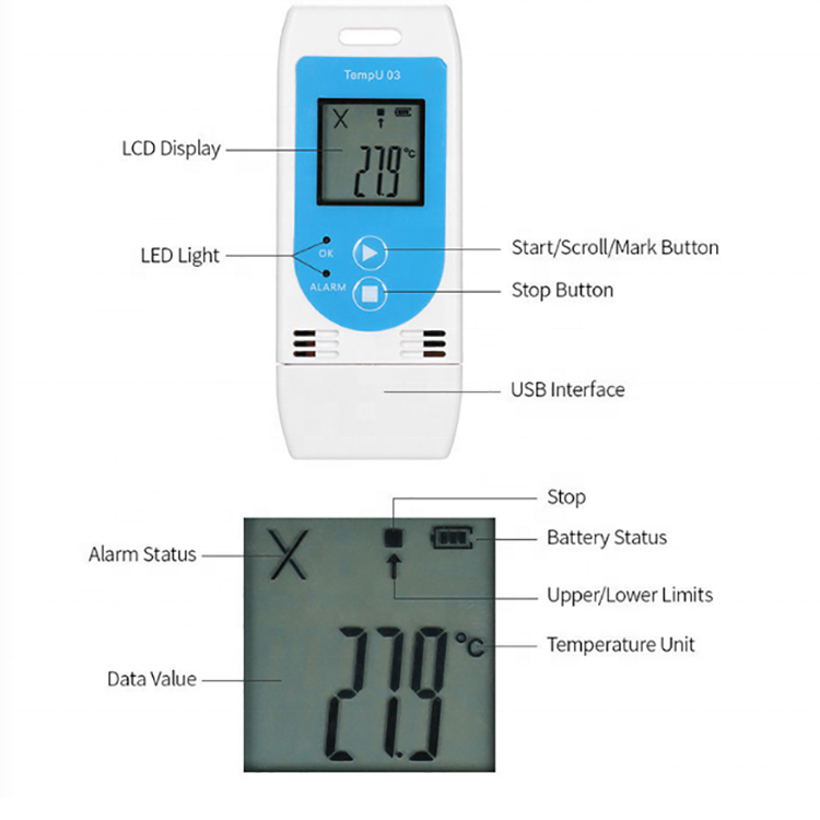 Đa-sử dụng nhiệt độ độ ẩm dữ liệu logger với 32000 điểm khả năng ghi âm