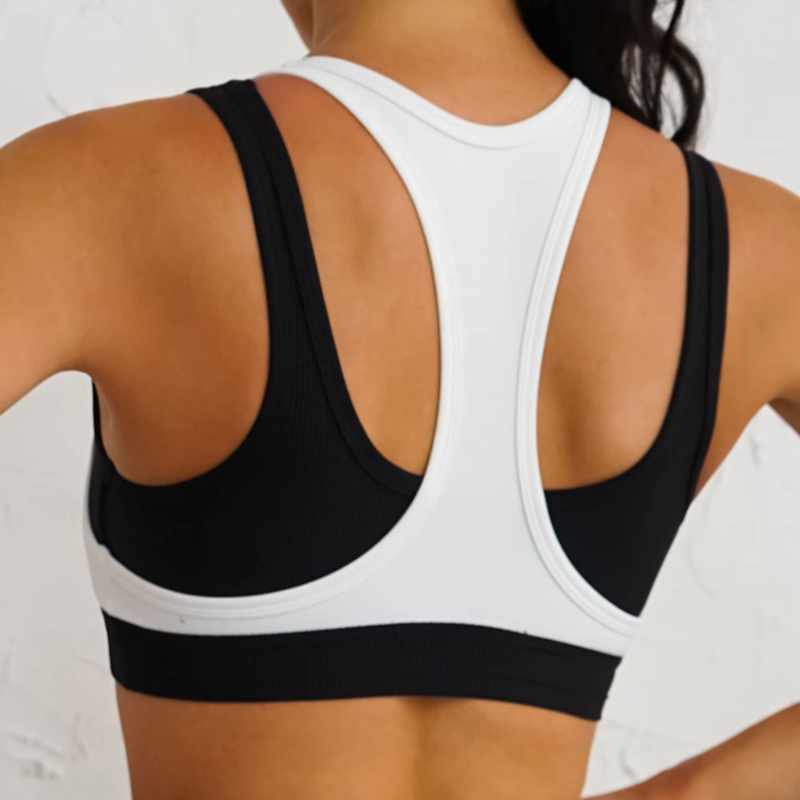 새로운 도착 두 조각 대비 색상 패션 여성 스포츠 브라 하이 퀄리티 나일론 골지 패브릭 운동 브라