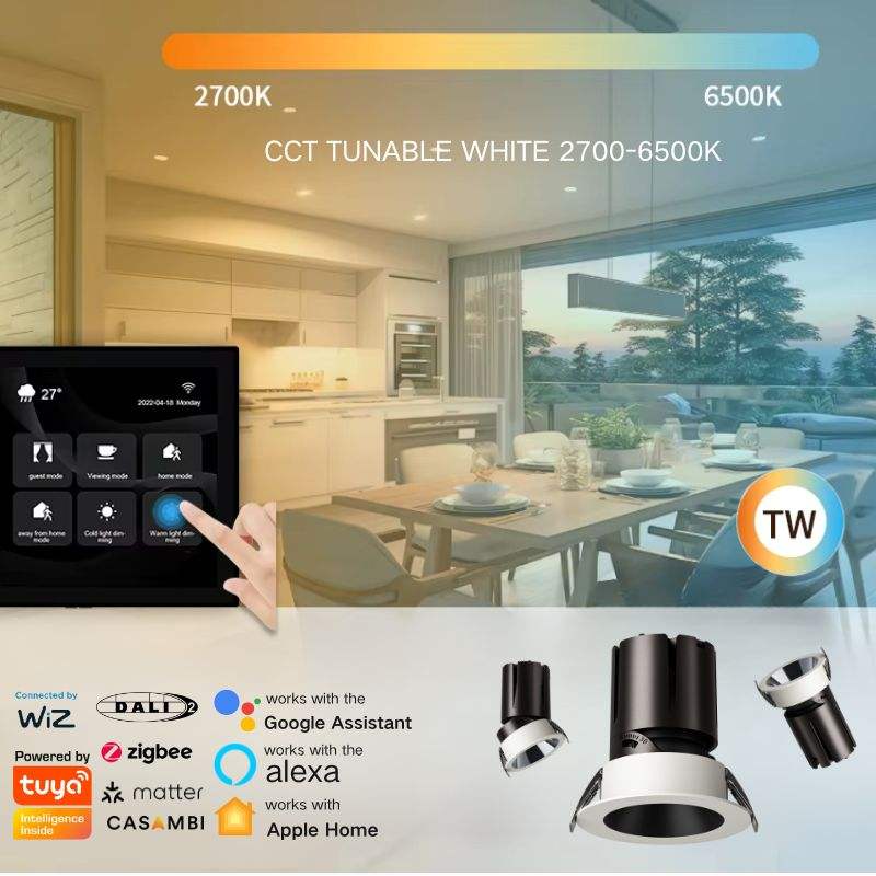 Nieuw Ontwerp Veerbelaste Downlight Deep Cup Anti-Glare Flush-Mounted Installatie Zigbee Tuya Dali Smart Home Systeem Downlight