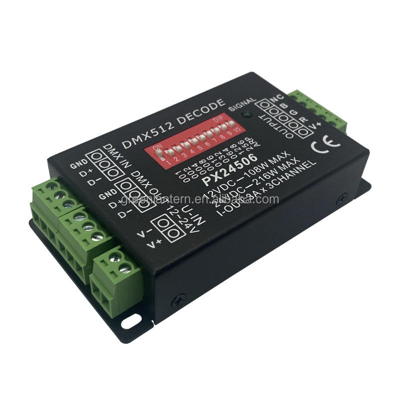 Decodificador PX24506 DMX512, controlador Led DMX 512 RGB, módulo de luz LED, luces de tubo de escenario, decodificador Led DMX RGB 12V 24V