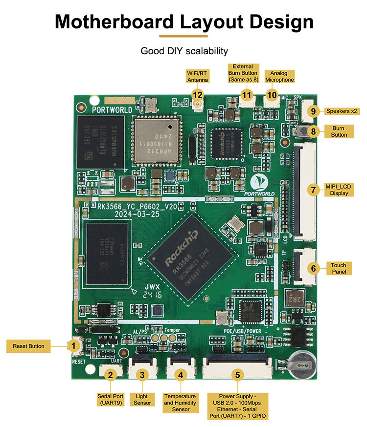 Giao diện:Mipi _ DSi, I2C, UART, RS485, RS232, SPK, mic, KNX,.etc