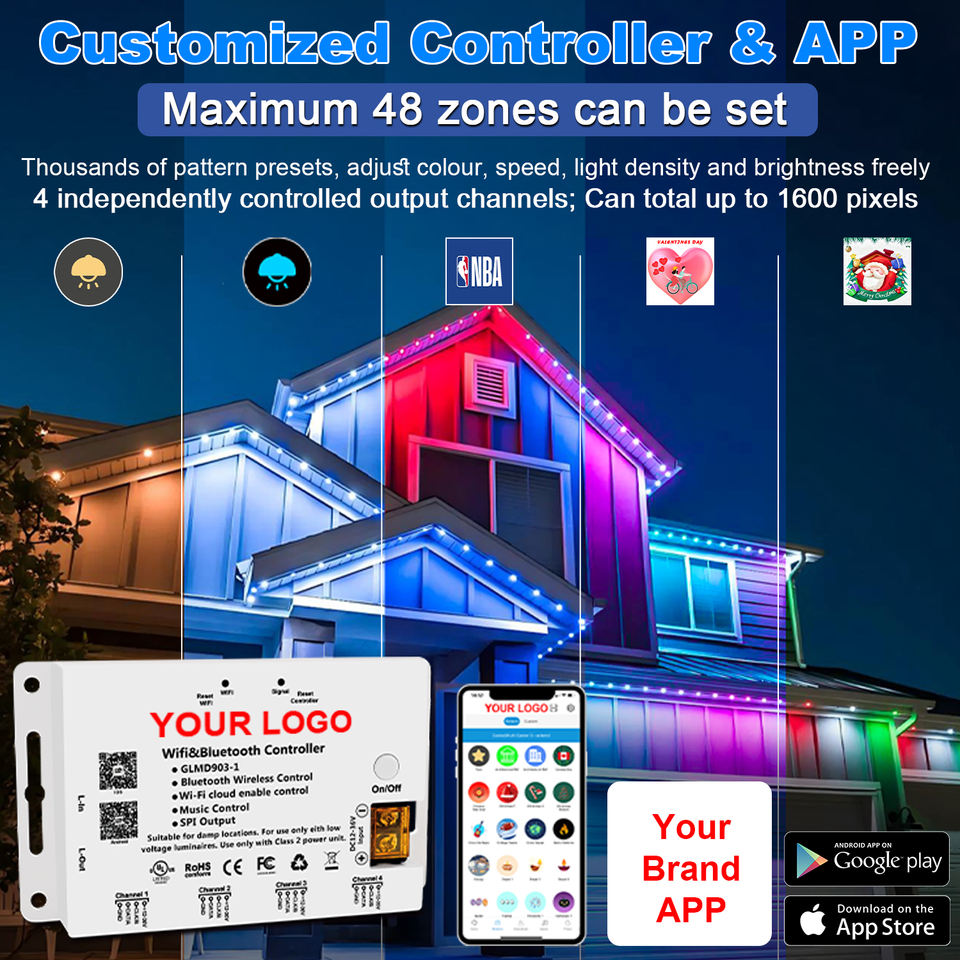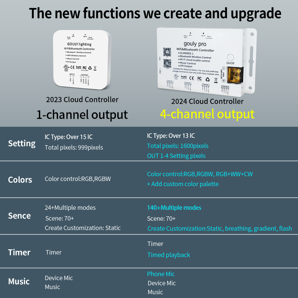ระบบควบคุมไฟ LED พิกเซลแบบตั้งโปรแกรมได้ระบบควบคุมอัจฉริยะสำหรับบ้านอัจฉริยะ RGB Cloud WiFi ซิงค์เพลง4เอาต์พุตควบคุมพิกเซล LED