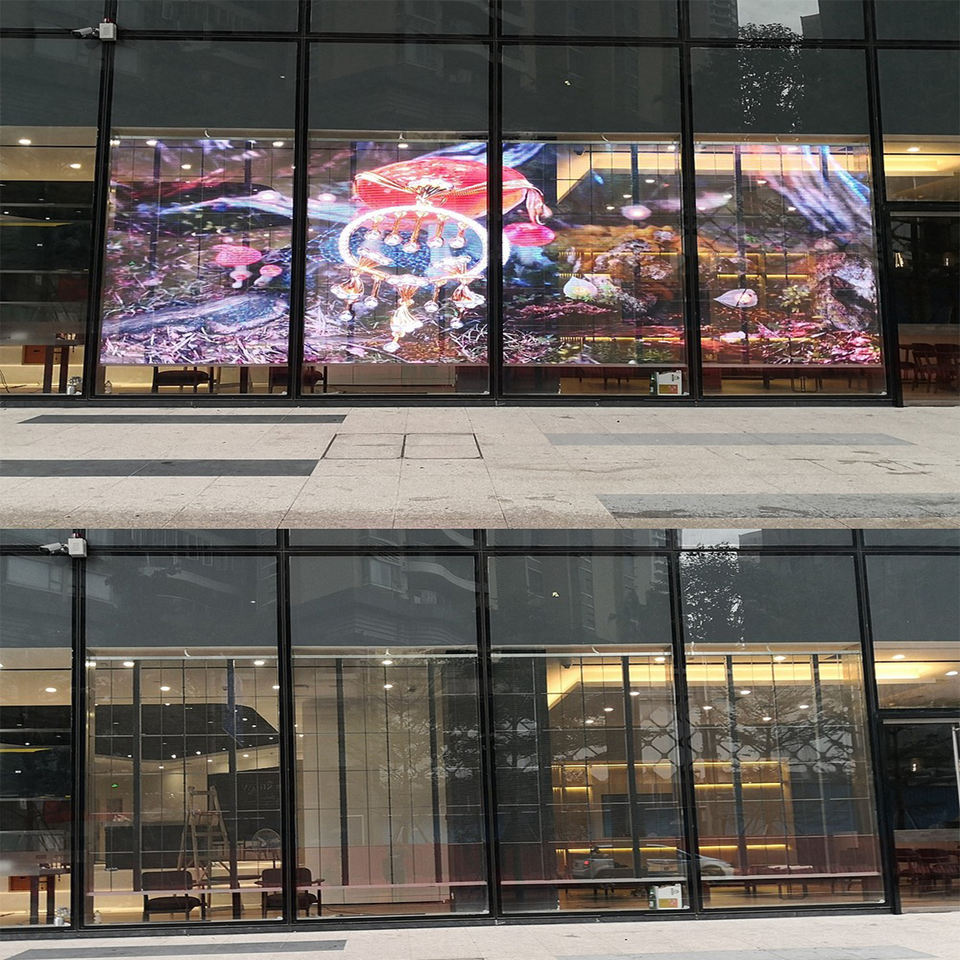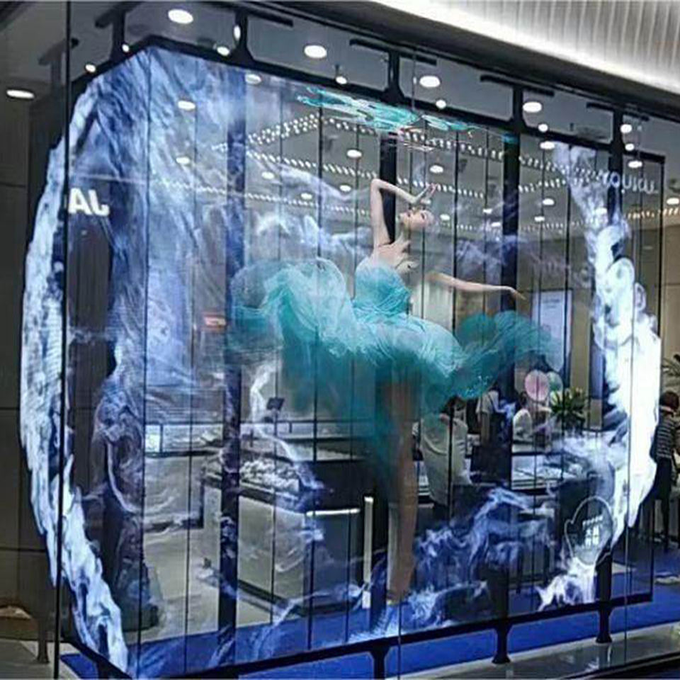 Película de pantalla Led transparente de Control inteligente Pushunled P3.91 Fuerte 8K Tienda minorista Luces de coche Led Pantalla de publicidad 3D