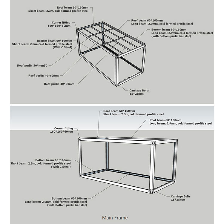 Thùng carton và Pallet cho 20ft 40ft Trung Quốc đúc sẵn mái nhà CONTAINER Gói phẳng;