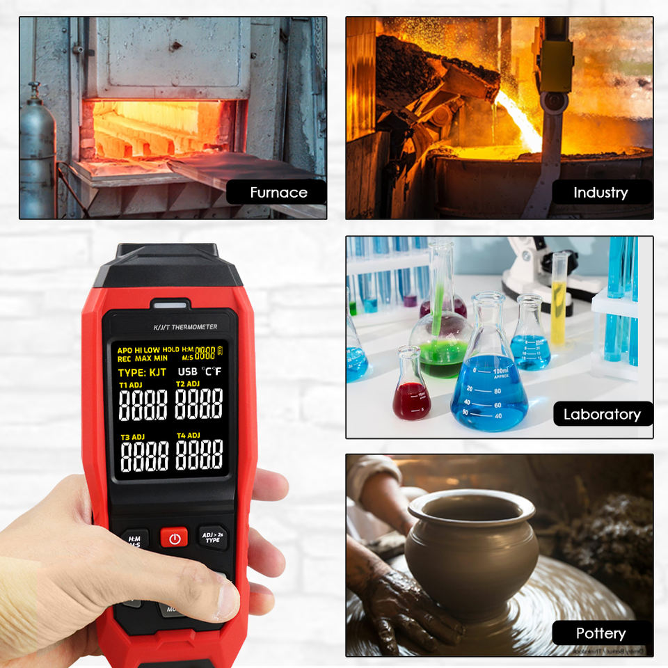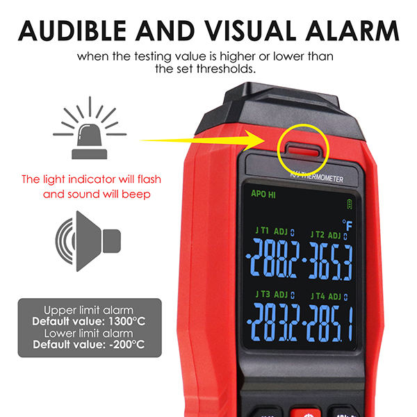 Termómetro de registro de datos en tiempo real Temperatura de 4 canales Alarma audible y visible Termopar K J T para monitoreo industrial
