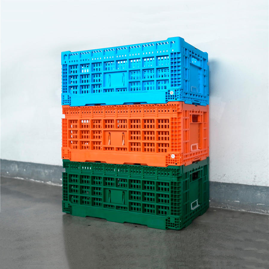 Keranjang lipat dapat dilipat, keranjang makanan laut sayuran buah susun kotak bergerak HDPE dapat dilipat dapat didaur ulang