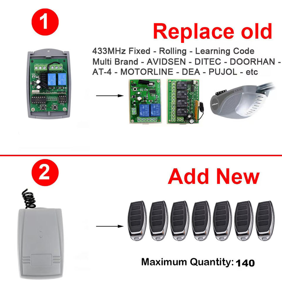 Bộ Phát Và Thu Điều Khiển Từ Xa Bộ Thu Đa Năng 2 Kênh Và 2 Nút Điều Khiển Từ Xa Mã Cuộn 4 Nút 433 Mhz
