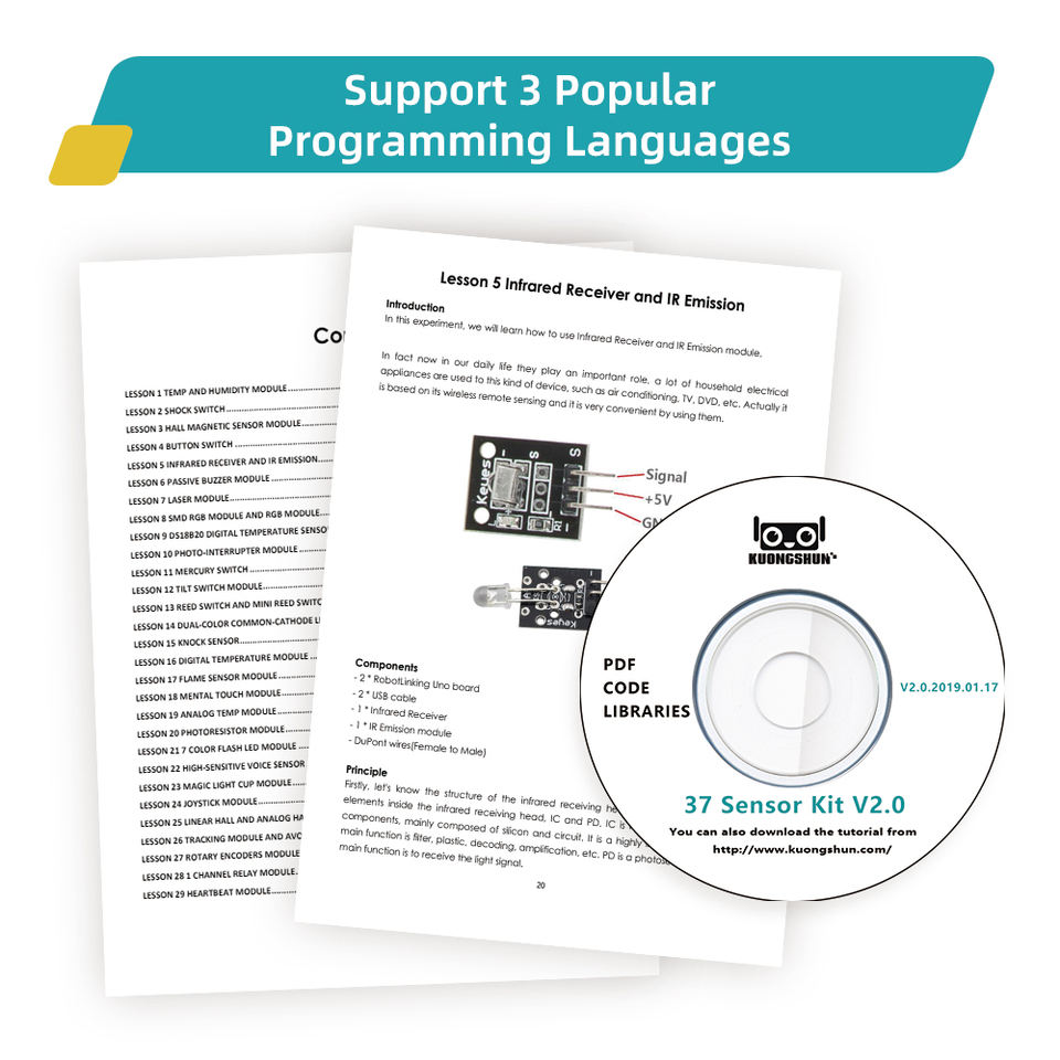 Kit de 37 Módulos de sensor Robotlinking con tutorial compatible con Arduino IDE UNO R3 MEGA Nano