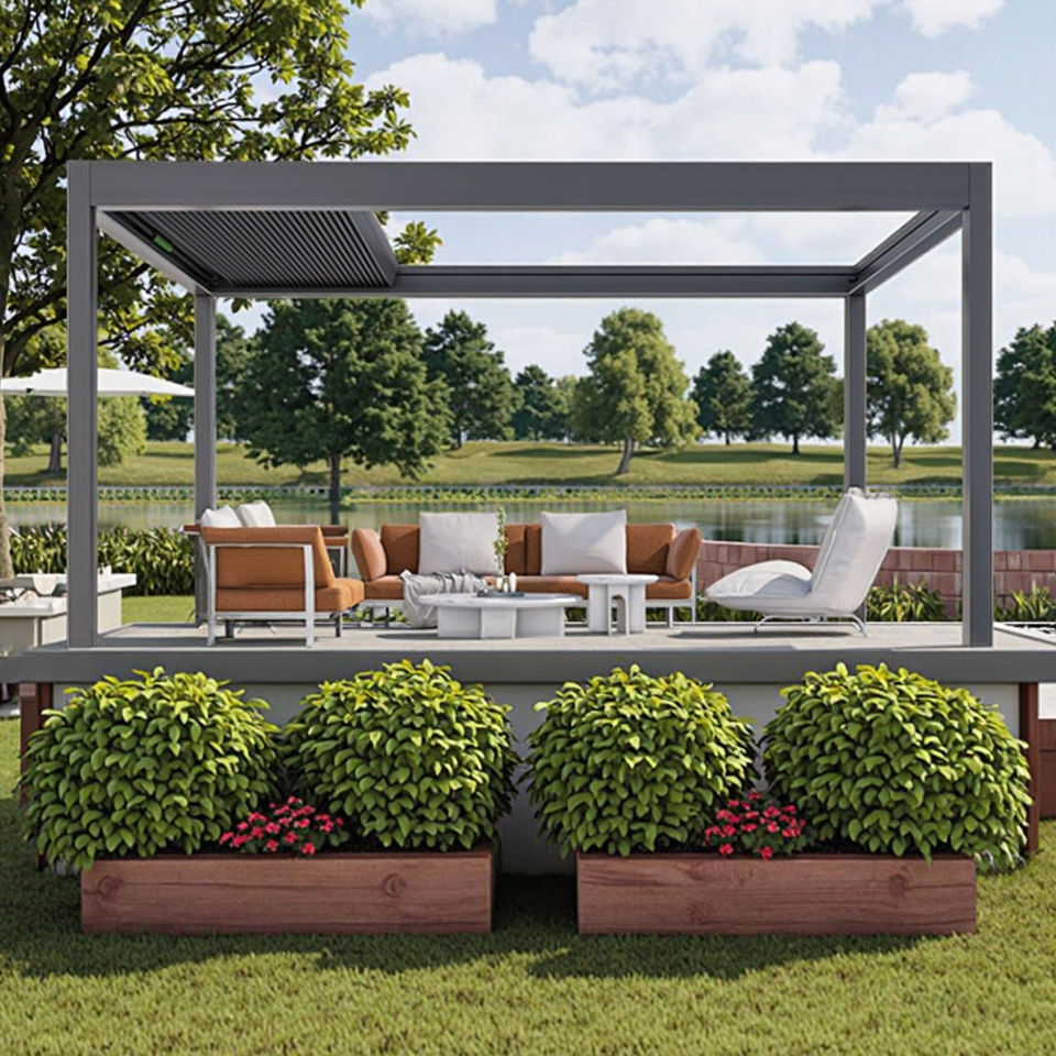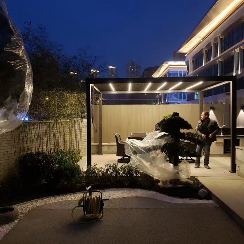 SINGO Pavilion taman listrik bermotor, lovered Pergola Aluminium dapat ditarik kontrol Manual beberapa skenario