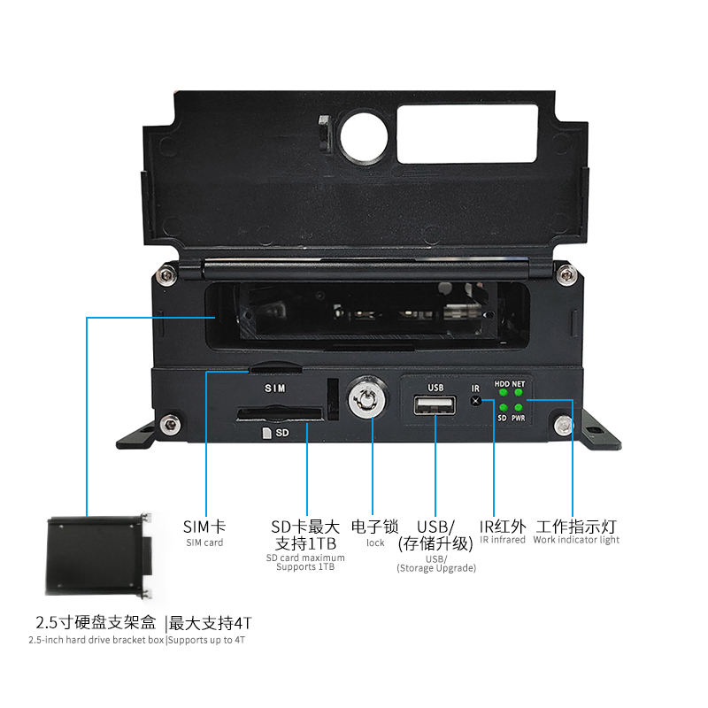 SD card Max 1TB and HDD Max 4TB(not include)