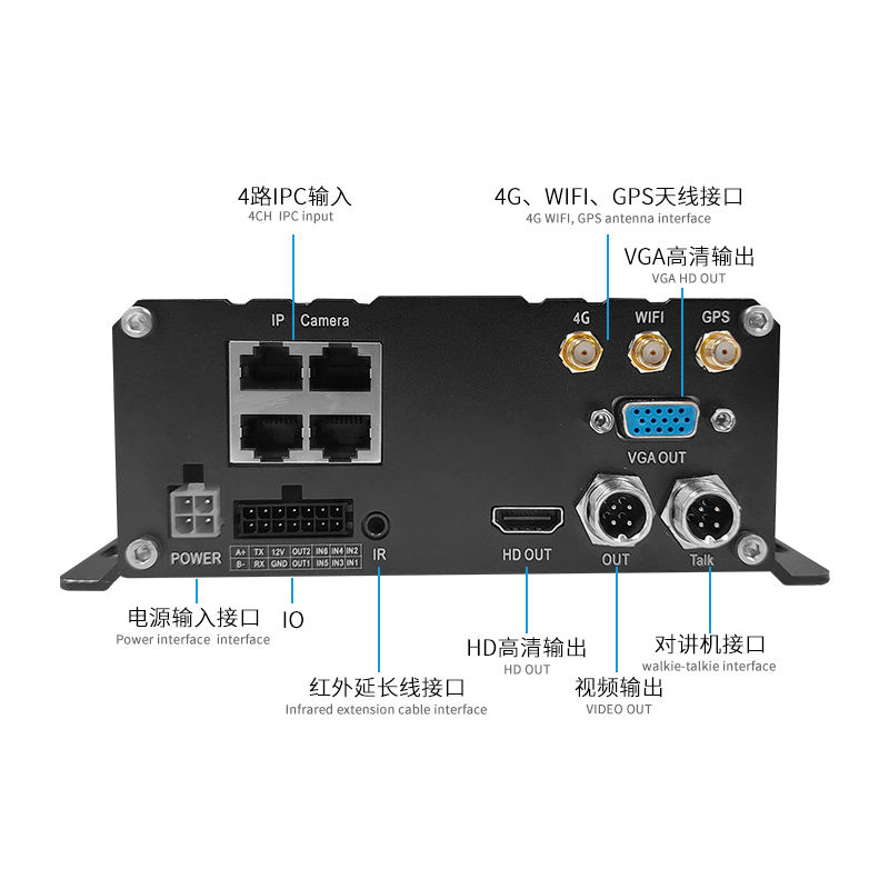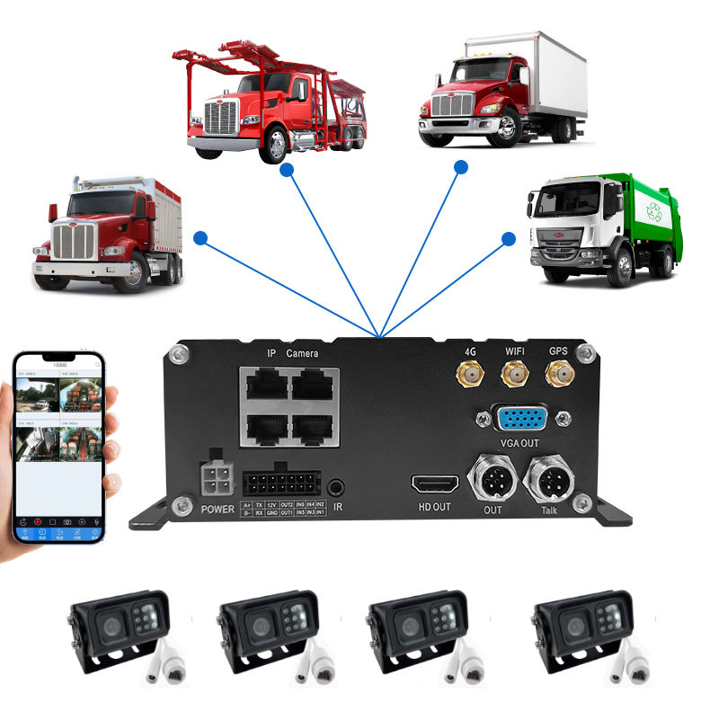 NVR Móvil IPC de 4 Canales con Cámara de 2MP, Entrada MNVR, 4G, WIFI, GPS, IA, ADS, DSM, DMS, BSD, DVR para Camiones