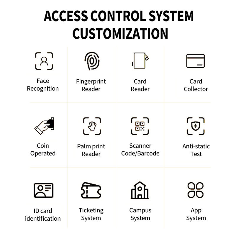 Reconocimiento de la cara, Huella dactilar, Código QR, Tarjeta RFID, Sistema ESDTipo contol de acceso