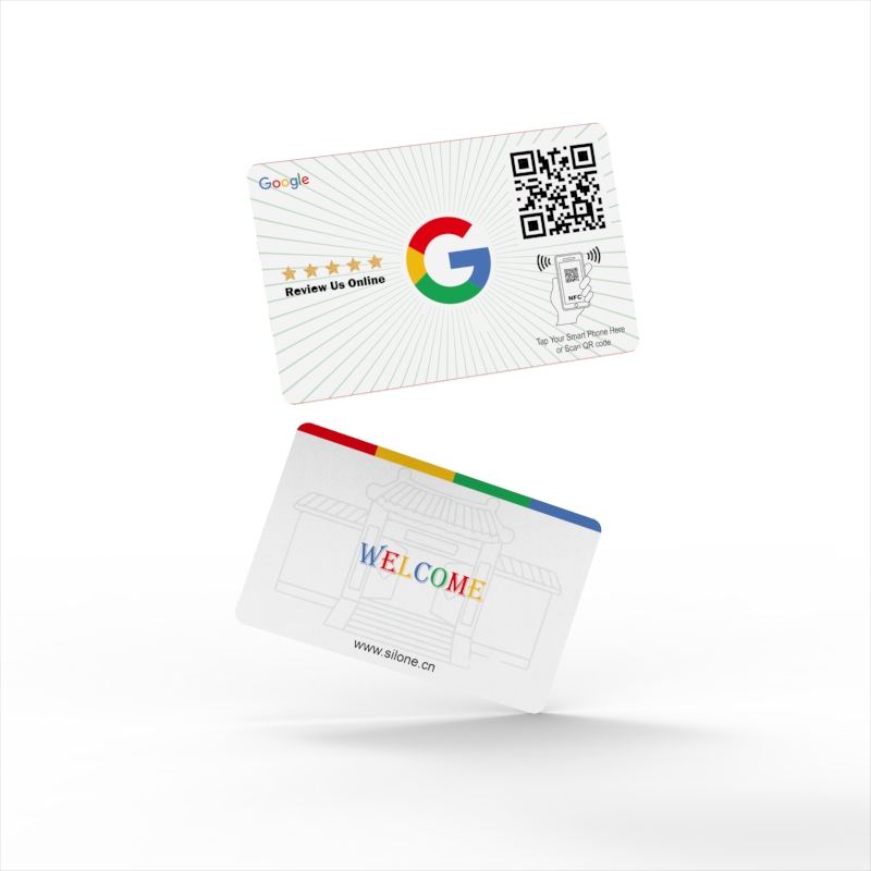 Silone LOGO personalizado Código QR 13,56 MHz PVC tarjeta RFID inteligente NFC Tarjeta DE REVISIÓN DE Google