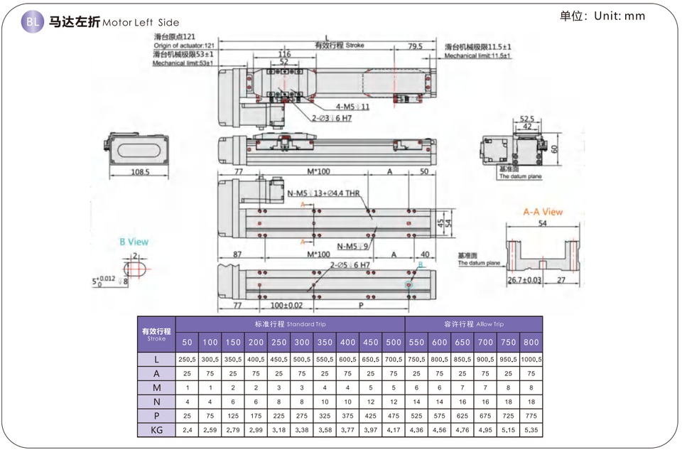 Nome del prodotto:Palco di movimento lineare con vite a ricircolo incorporato