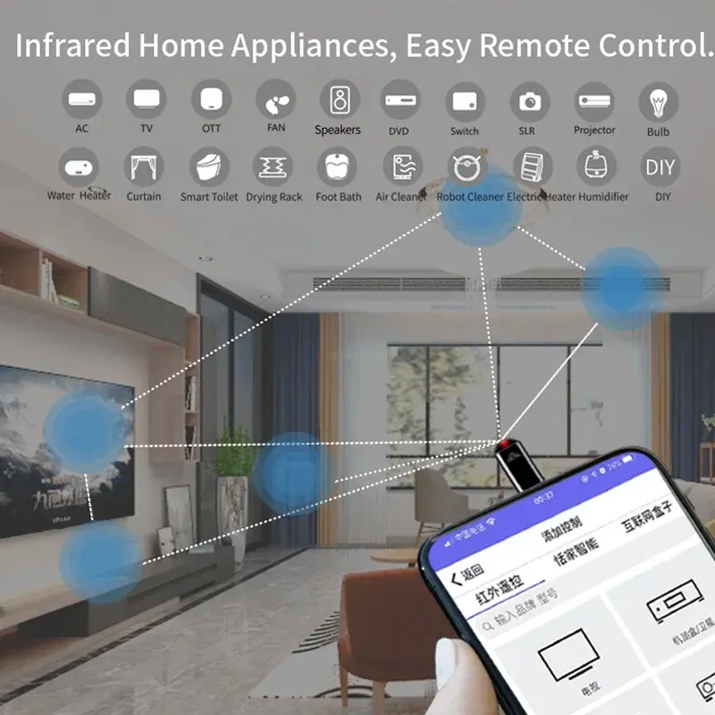 Adaptador de Control de Aplicación de Infrarrojos Inteligente Android Tipo C Micro USB Control Remoto Universal TV Aire Acondicionado Smartphone Material ABS
