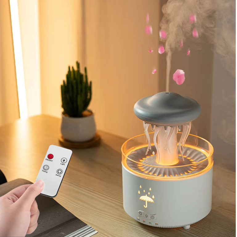 Thông Minh Điều Khiển Từ Xa Giọt Nước Khuếch Tán 300Ml Sứa Xoay Siêu Âm Độ Ẩm Mưa Đám Mây Khuếch Tán Hương Thơm Với Ánh Sáng