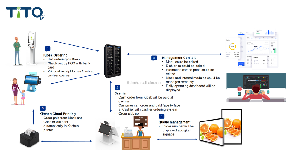 Kiosk Tự Đặt Hàng Thông Minh Với Hệ Thống Quản Lý Hàng Đợi Và Hệ Thống Thu Ngân Với Đầu Đọc Thẻ Máy In Vé