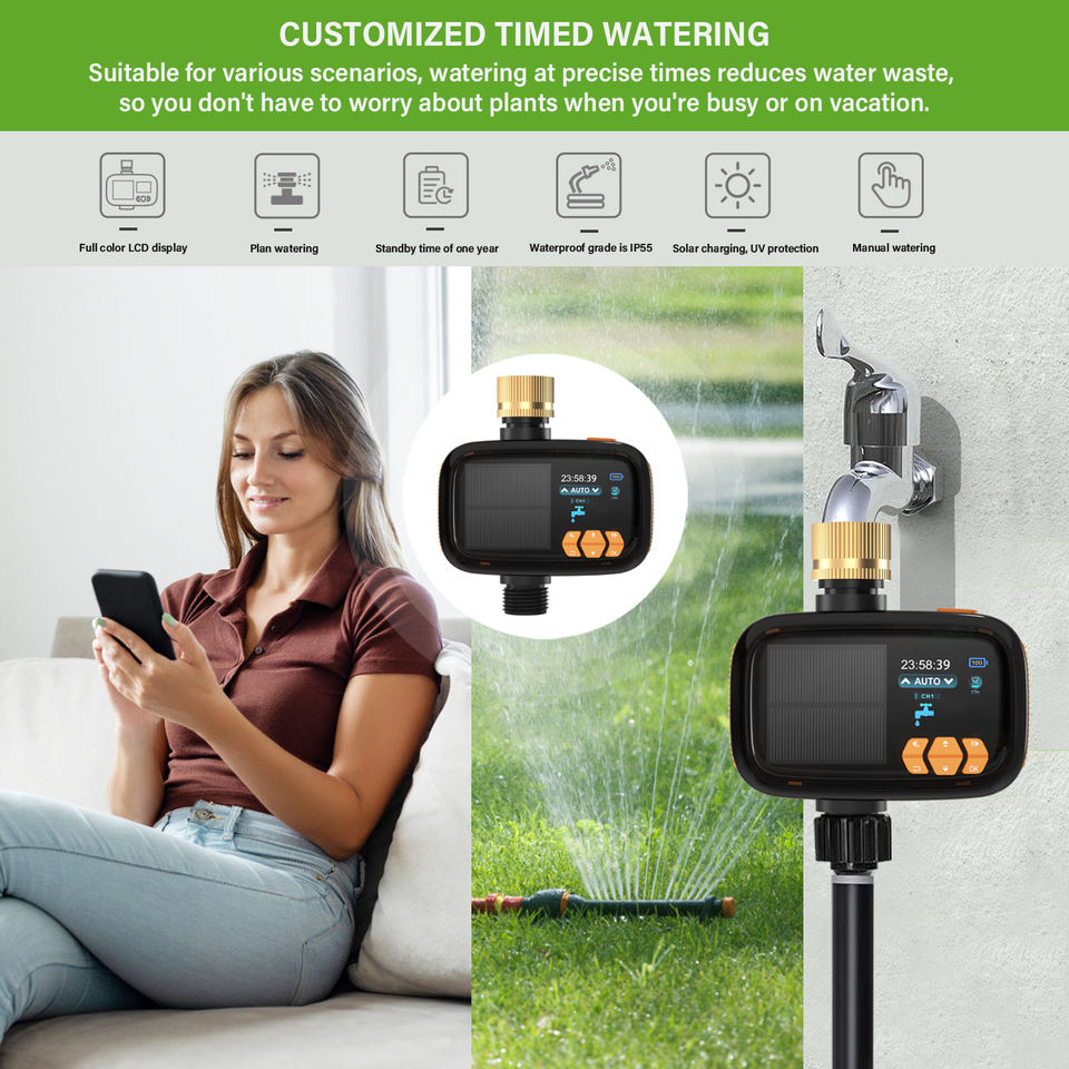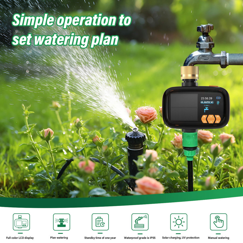 เครื่องจับเวลาการรดน้ำอัตโนมัติพลังงานแสงอาทิตย์, หน้าจอ LCD และ IP55กันน้ำเครื่องจับเวลาการรดน้ำในสวนอัจฉริยะ