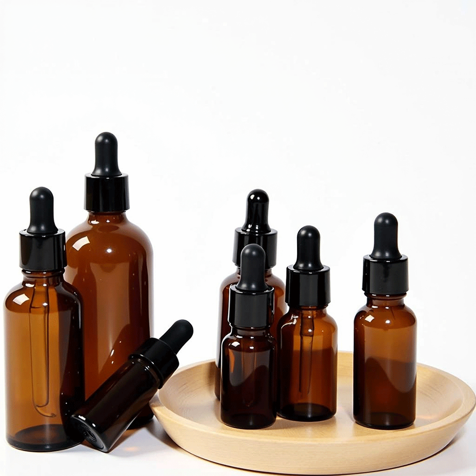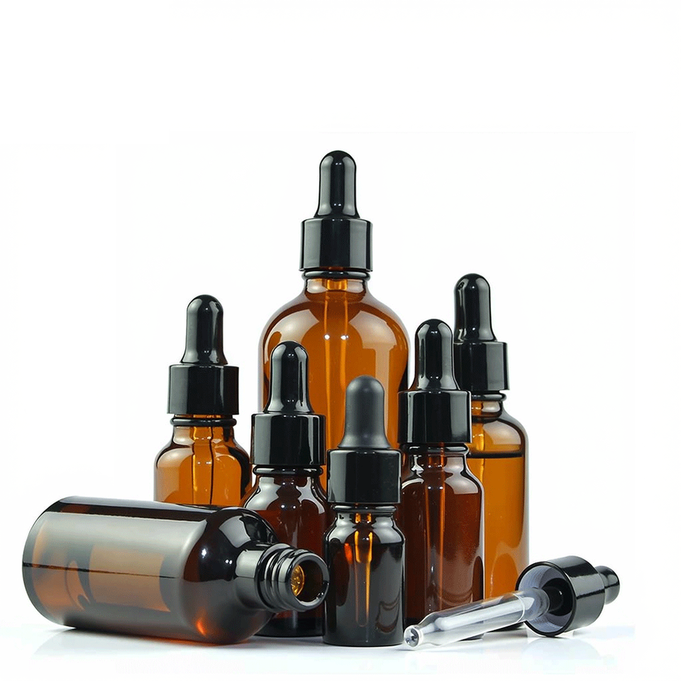 Mükemmel 5ml 10ml 15ml 20ml 30ml 50ml 100ml özel yuvarlak omuz Amber cam damlalık şişe pipet ile uçucu yağ