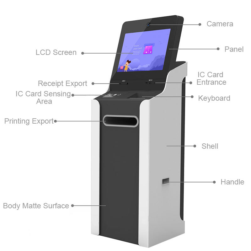 Hỗ trợ tùy biến kiosk ngân hàng hàng đợi thiết bị đầu cuối hiển thị tương tác kiosk với máy in vé A4 in kiosk