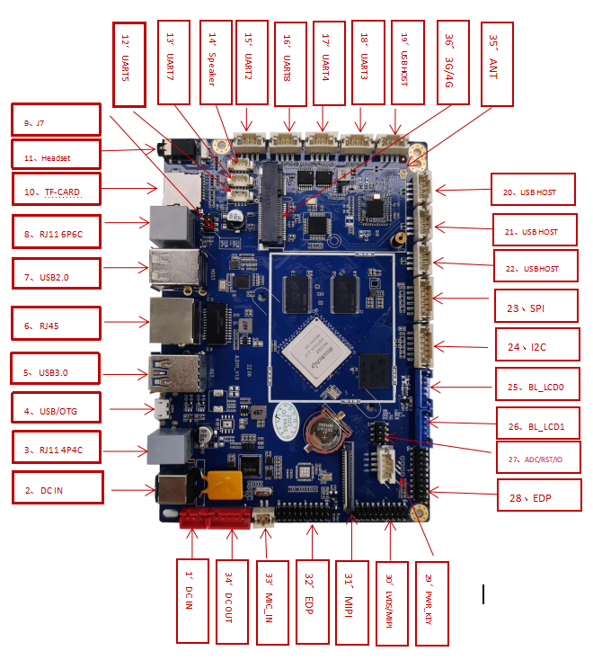 وحدة معالجة مركزية:RK3568 أعلى تردد يصل إلى 2.0GHZ, وحدة معالجة مركزية