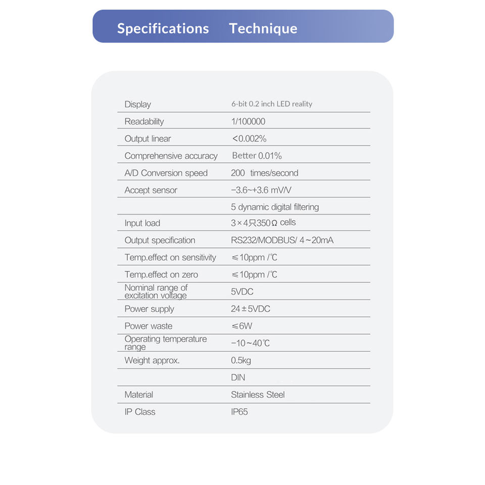 Đặc điểm kỹ thuật đầu ra:RS232/Modbus/4 ~ 20ma