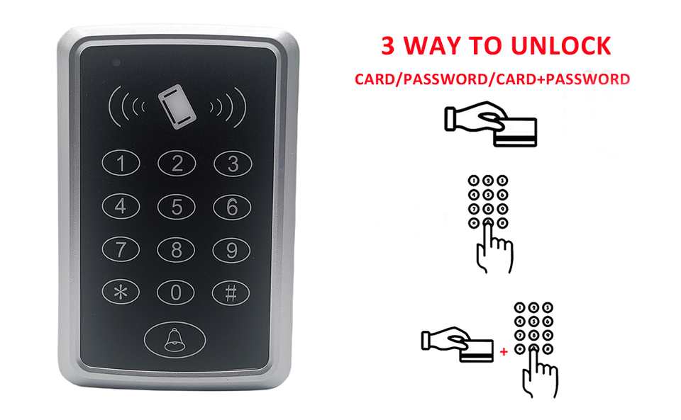 T11 125kHz RFID Control DE ACCESO Teclado Tarjeta Controlador Sistema de bloqueo de puerta inteligente con botón de timbre de puerta