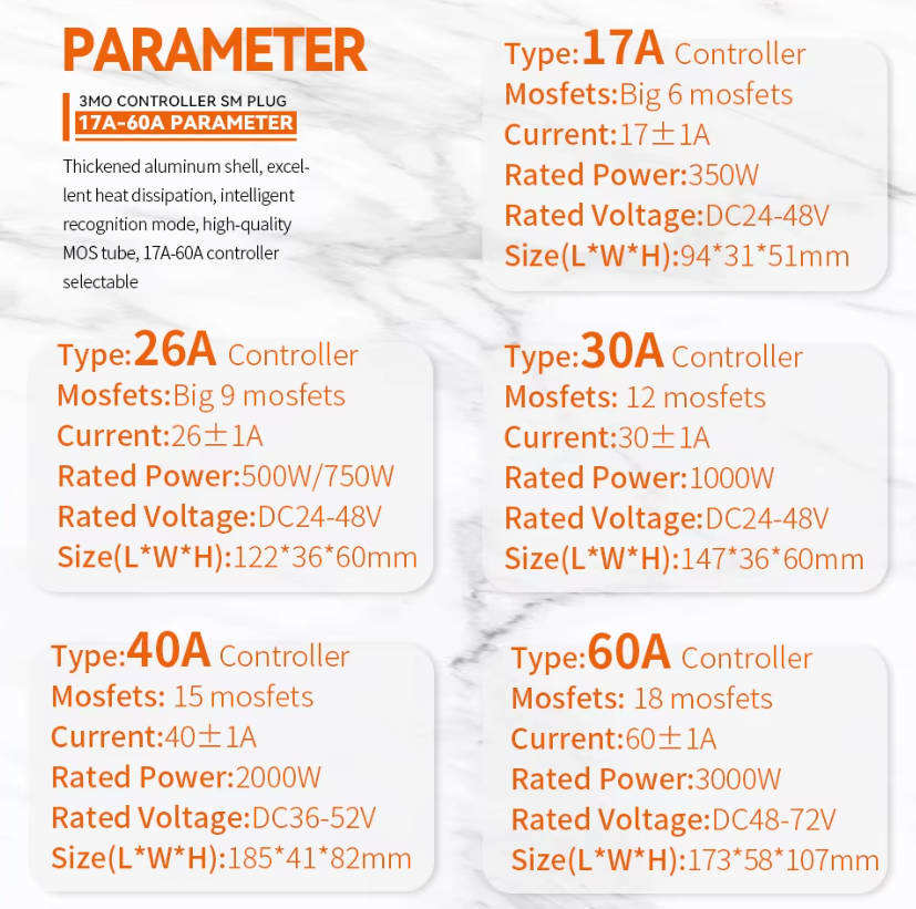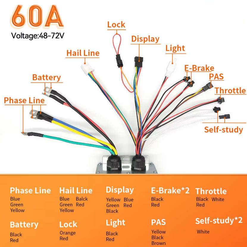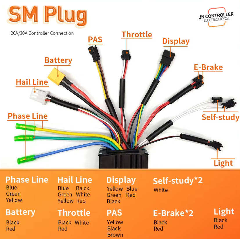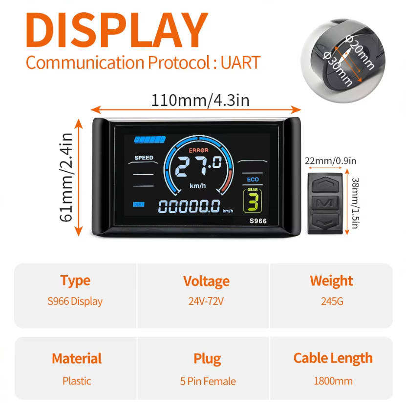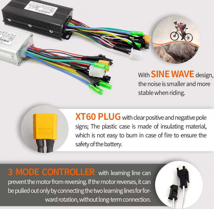 Controlador de Función de Aprendizaje de Onda Sinusoidal de Tres Modos S966 24v-48v 17A-60A con Pantalla LCD a Color para Bicicleta Eléctrica con Motor de 350W-1000W Corriente Continua