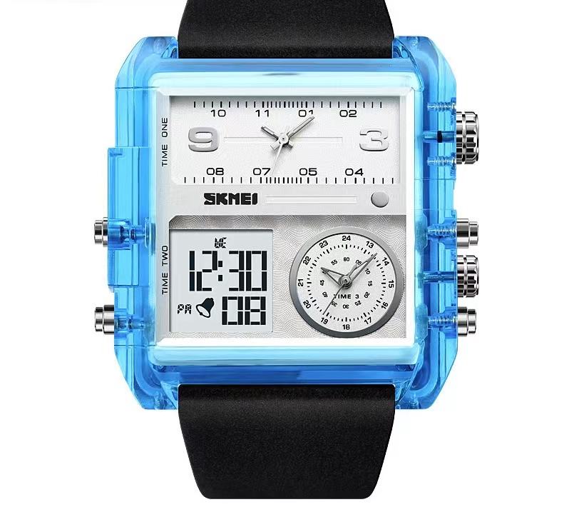 Reloj con pantalla de tres tiempos, reloj impermeable electrónico todo en uno multifuncional para jóvenes