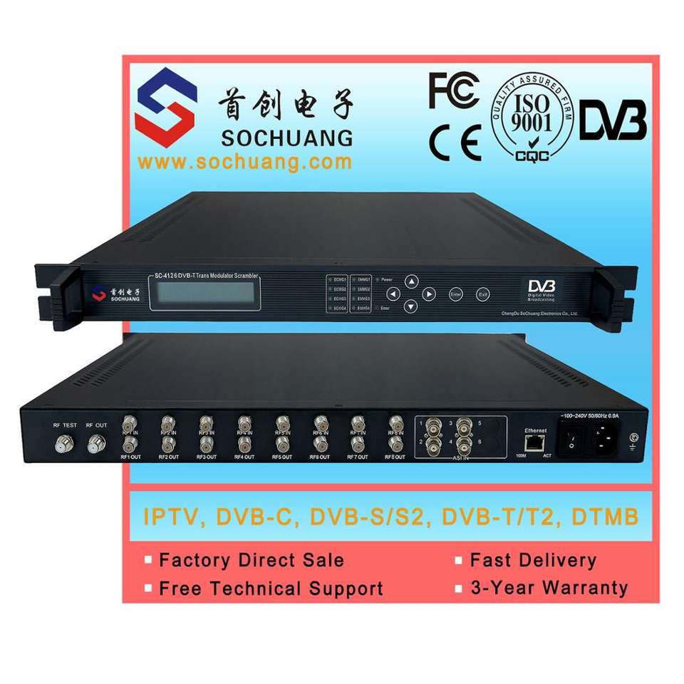 Modulador dvb-s2 a dvb-t cofdm hotel rf modulador (8 DVB-S satélite/S2 + entrada ASI, 3 * salida DVB-T RF)