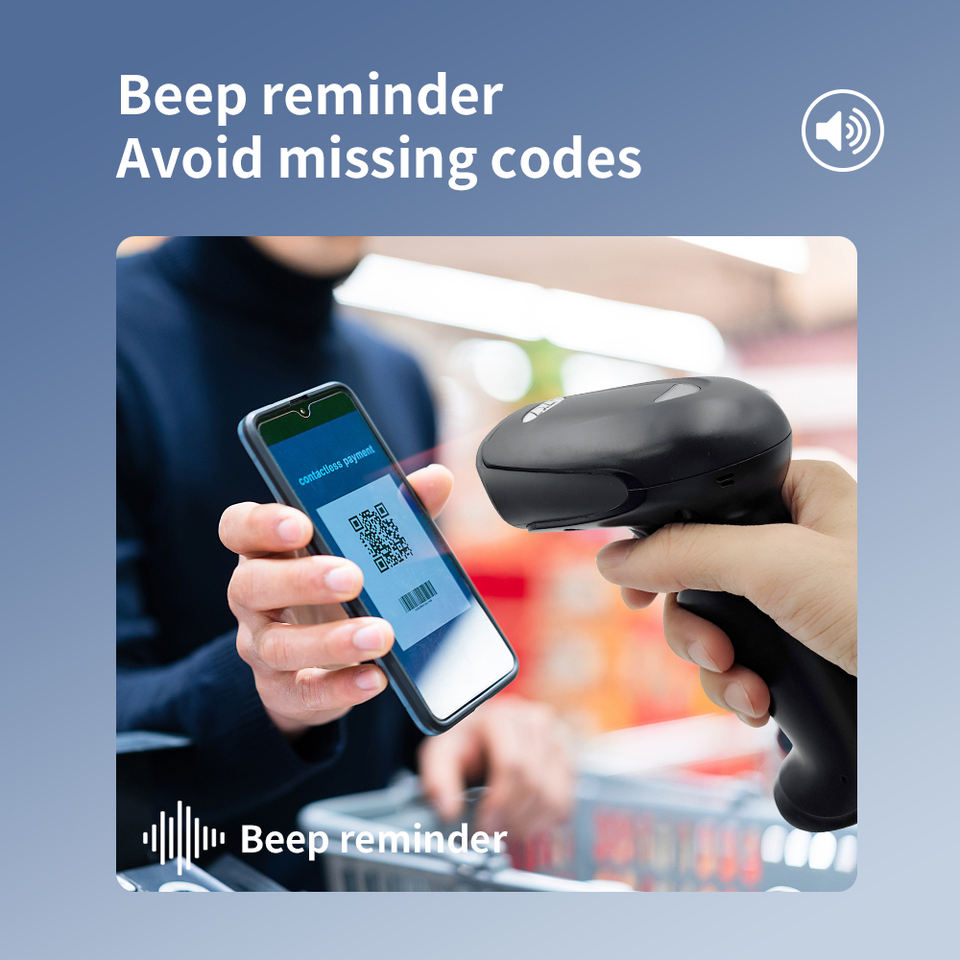 Interface USB Handheld QR Code Scanner Sem Fio Preço Barato 1D Laser Barcode Reader para Android Tamanho A4 Supermarkets' Stock