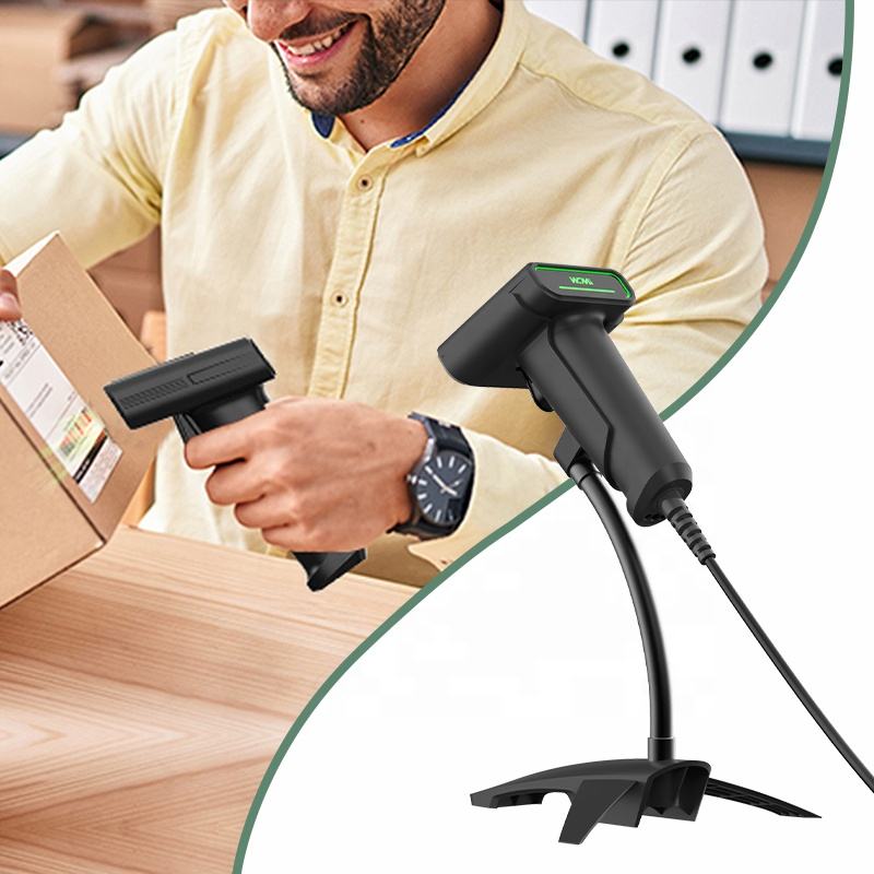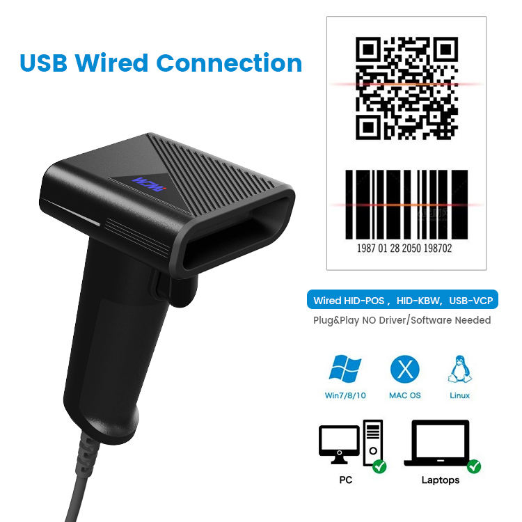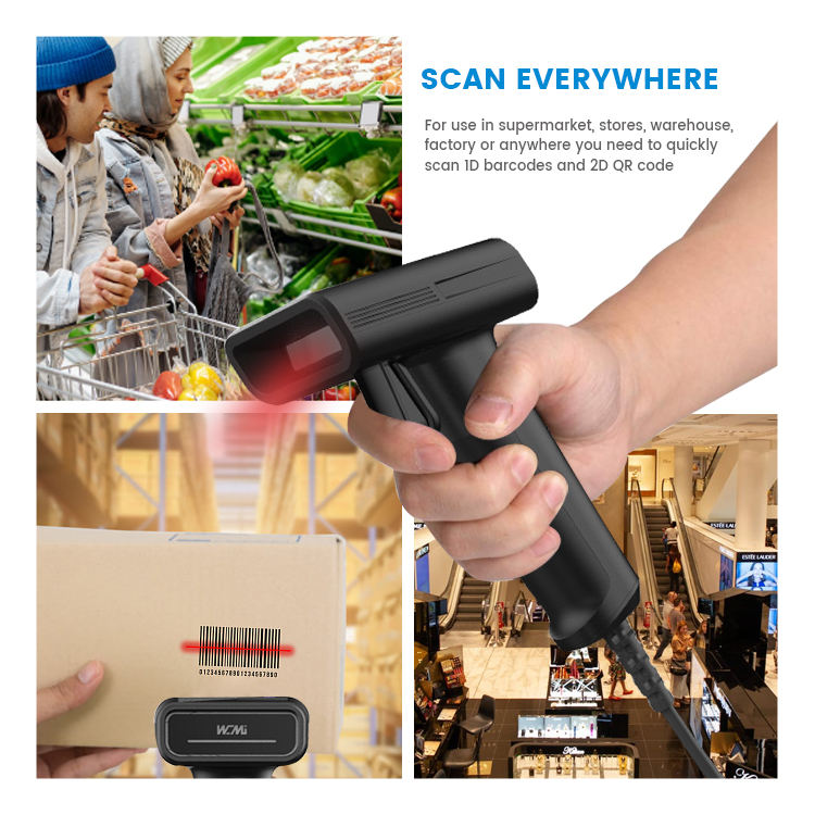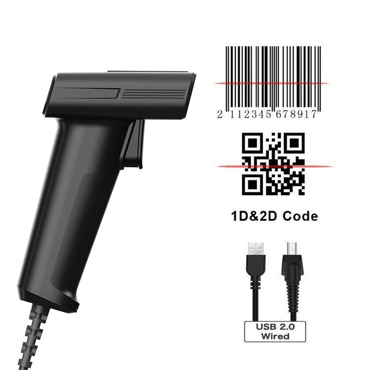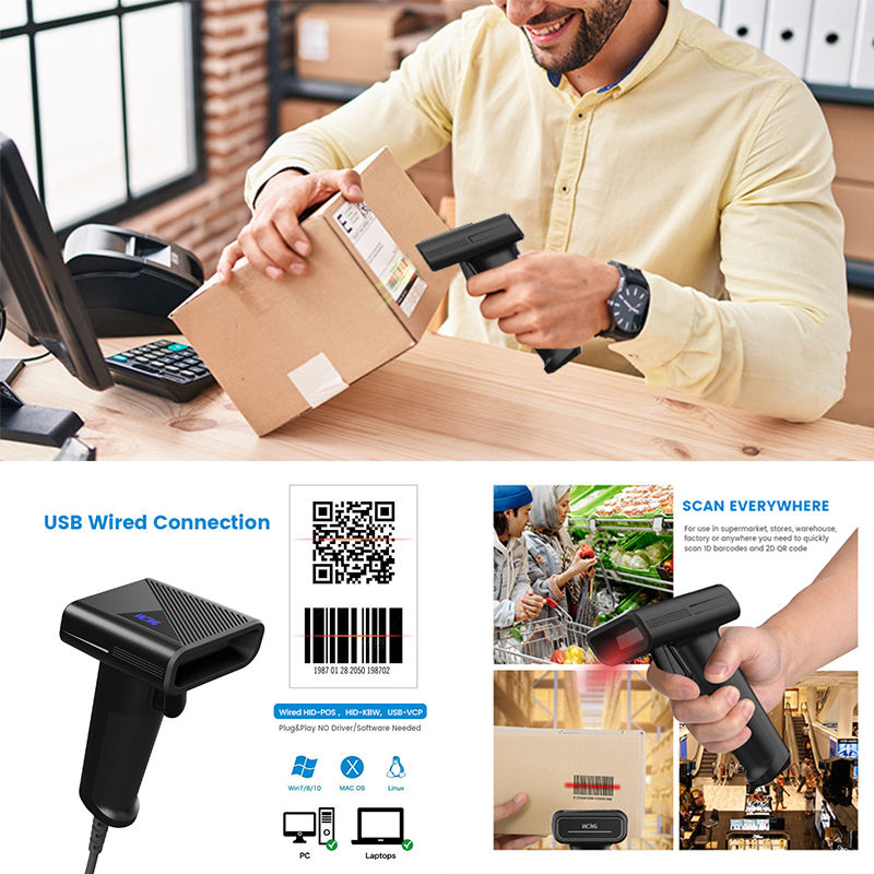 Sistema de almacén Lector de código de barras Código QR 2d Escáner de código de barras con cable para inventario