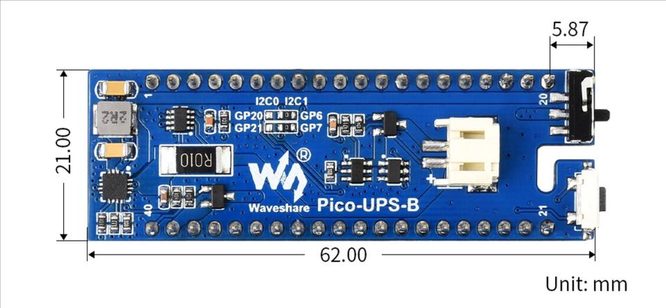 Waveshare UPS Module for Raspberry Pi Pico, Uninterruptible Power Supply I2C Control Bus, Li-po Battery, Stackable Design