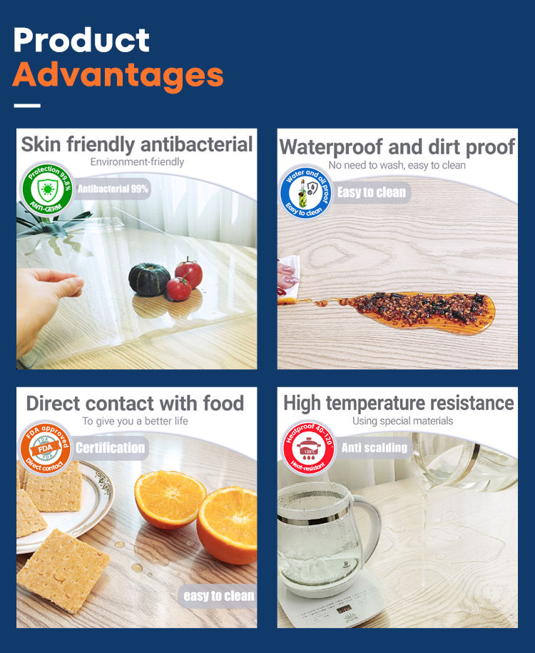 Cubierta de mesa Wipeble para protección Mantel de PVC suave y transparente Protector de mesa impermeable transparente