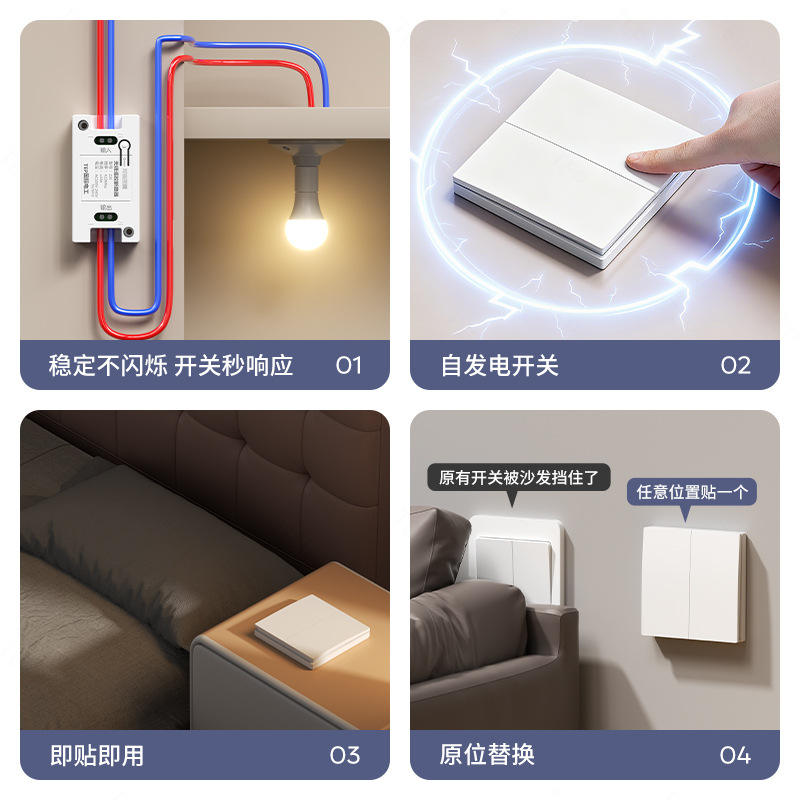 Interruptor de Controle Remoto Sem Fio Controlador de Energia Autogerador Painel Receptor 220V Sem Fiação Controle Duplo Doméstico Sem Bateria